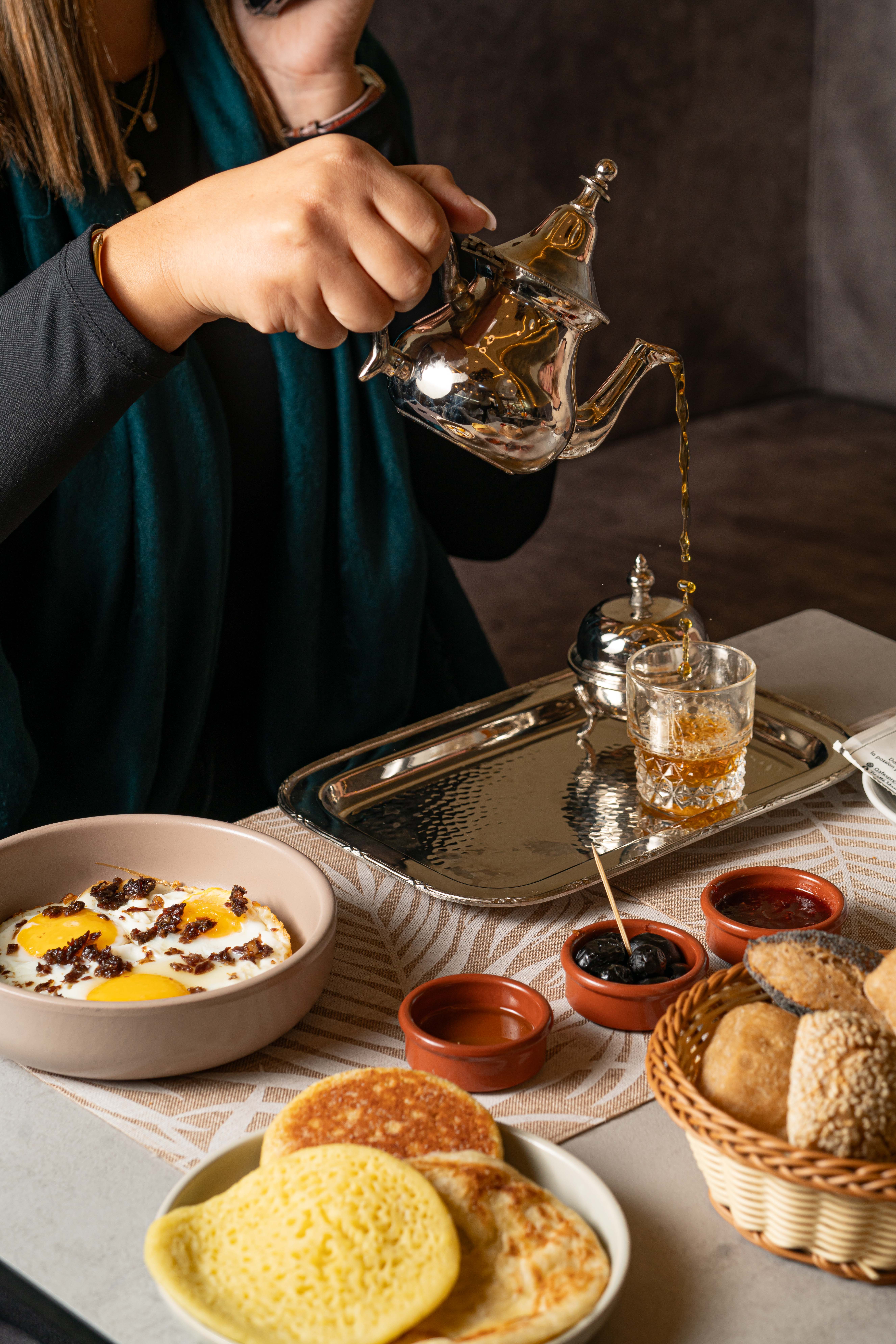 Extra Egg 7 Dhs White Cheese (Fromage Blanc), Muesli, Seasonal Fruits 5 Dhs Basket of small breads/rolls, Butter, Honey, Olive Oil, Jam 22 Dhs Turkey Ham, Cheese, Avocado 15 Dhs Msammen, Harcha, Beghrir (Traditional Moroccan Pancakes/Flatbreads) 18 Dhs 3 Choices of Sides/Dips: Amlou (Almond/Argan Oil Spread), Honey, Olive Oil 18 Dhs